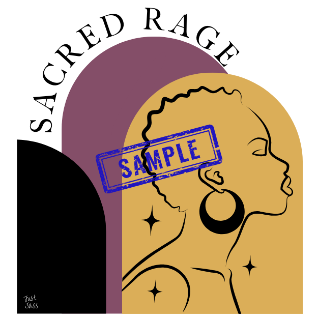 Black woman on top of 3 overlapping archways. Sacred rage written above image with a definition below.